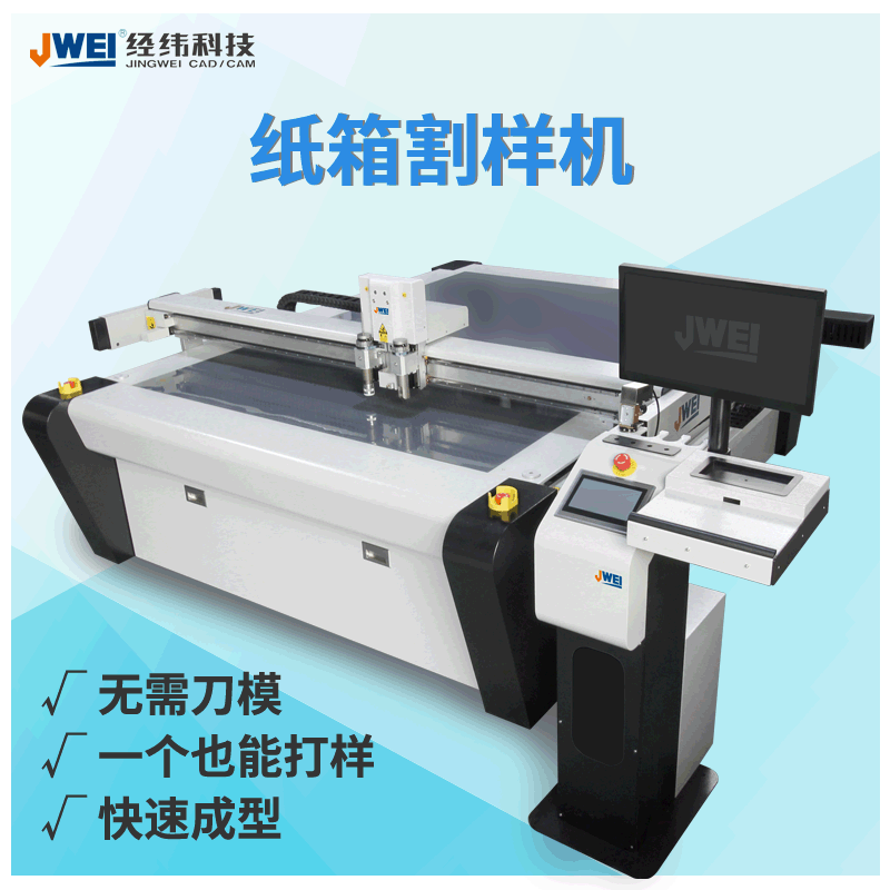 经纬纸箱打样机是一款多功能型打样机,无需制作刀模,仅需盒型文件即可让纸箱纸盒彩盒等各种盒型立即成型,专门用于纸箱彩盒的打样以及小批量生产,再多盒型,再多尺寸,再多订单,都可以当天完成订单,省时省力升效率,是一款值得拥有的纸箱打样机。